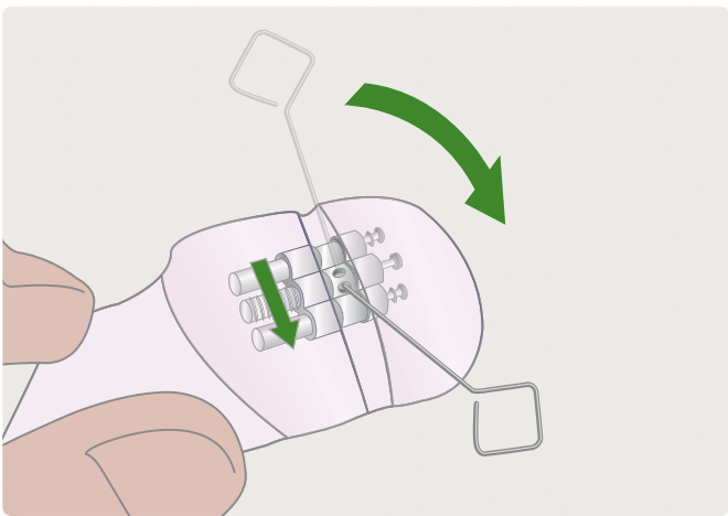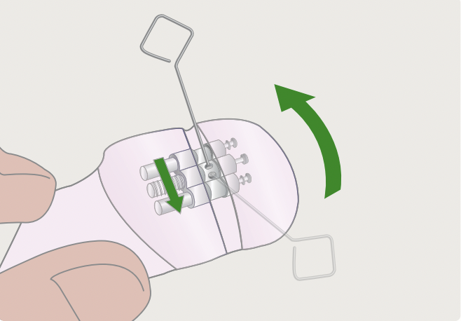 Remove the Appliance: Always remove the lower Dorsal device first by pulling upward with both thumbs. Remove the upper device by pulling down and forward with the index fingers and thumbs.