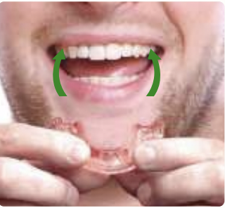 Insert the Upper Device: Place the upper Adjustable Herbst device in the mouth. Press up on the device with both thumbs to ensure a secure and comfortable fit.
