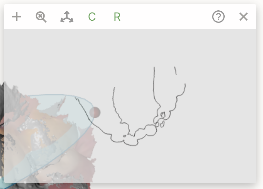 Centers and zooms on the selected anatomy (e.g., only the upper jaw).