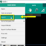 2. In your VaTech, open the patient scan. Click on “Main Menu,” then “Export.”