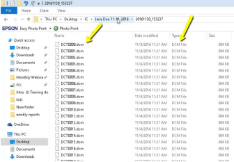 5. After the DICOM exports, go to the patient’s folder and verify that the .dcm files were exported correctly; there should be several hundred files.
