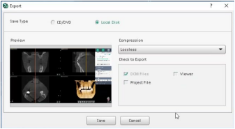 3. A pop up box will appear. For Save Type, select “Local Disk” for Compression, select “Lossless.” Then check off “DCM Files” to export, and click “Save.”