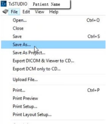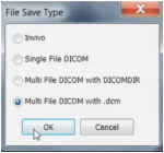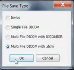 2. Open your image and click on “File > Save As,” then “Multi File DICOM with .dcm,” and click “OK.”