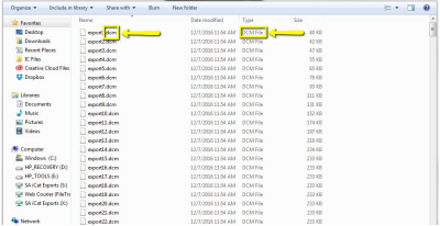 6. After the DICOM exports, go to the patient’s folder and verify the .dcm files were exported correctly; there should be several hundred files.