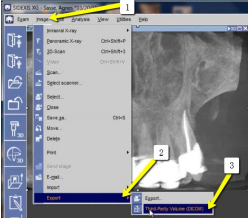 2. Go to patient scan and click on “Output,” then “DICOM Exam Export.”