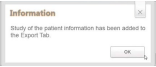3. Select the correct file and click “Export.” You will get a pop-up verifying that the patient information has been added to the export tab. Click “OK.”
