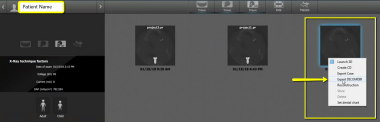 2. Open the patient history and right click on the tile of the newest CBCT. Select “Export DICOMDIR.”