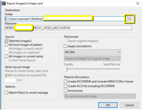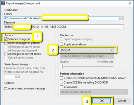 5. Ensure that “Selected image(s)” is checked and that the “File Format” is set to “DICOM.” No other boxes should be checked. Click “OK.”