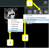 3. On the right side of the screen, click on “Save DICOM” button. Choose “Save as DICOM File,” then click “Axial Image.”
