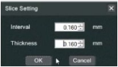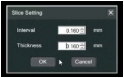 4. A box will pop up titled “Slice Setting.” Change the “Interval” and “Thickness” to the lowest setting possible (about 0.160 for each setting). Then click “OK.”