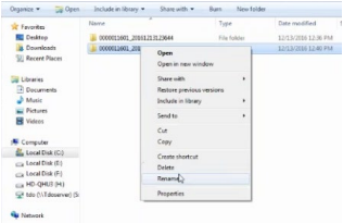 10. Once you have located the correct scan, right-click on the folder, go to “Rename”, and type “Patient Last Name, First Name.”