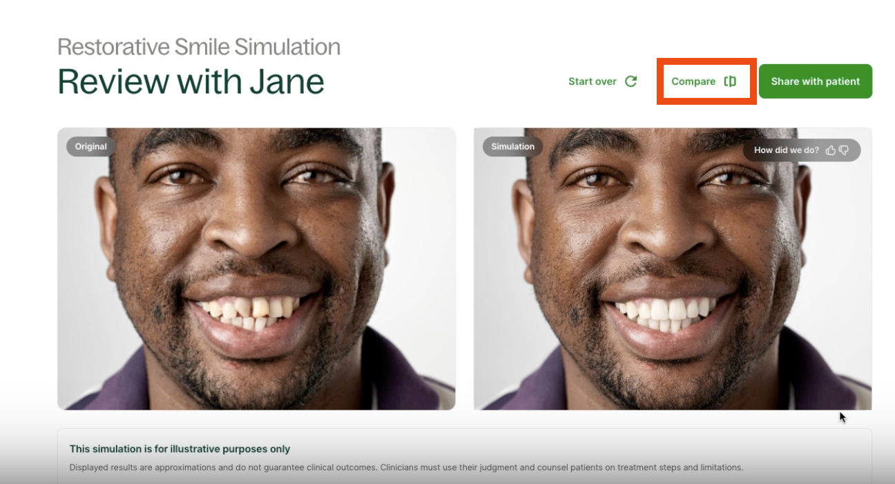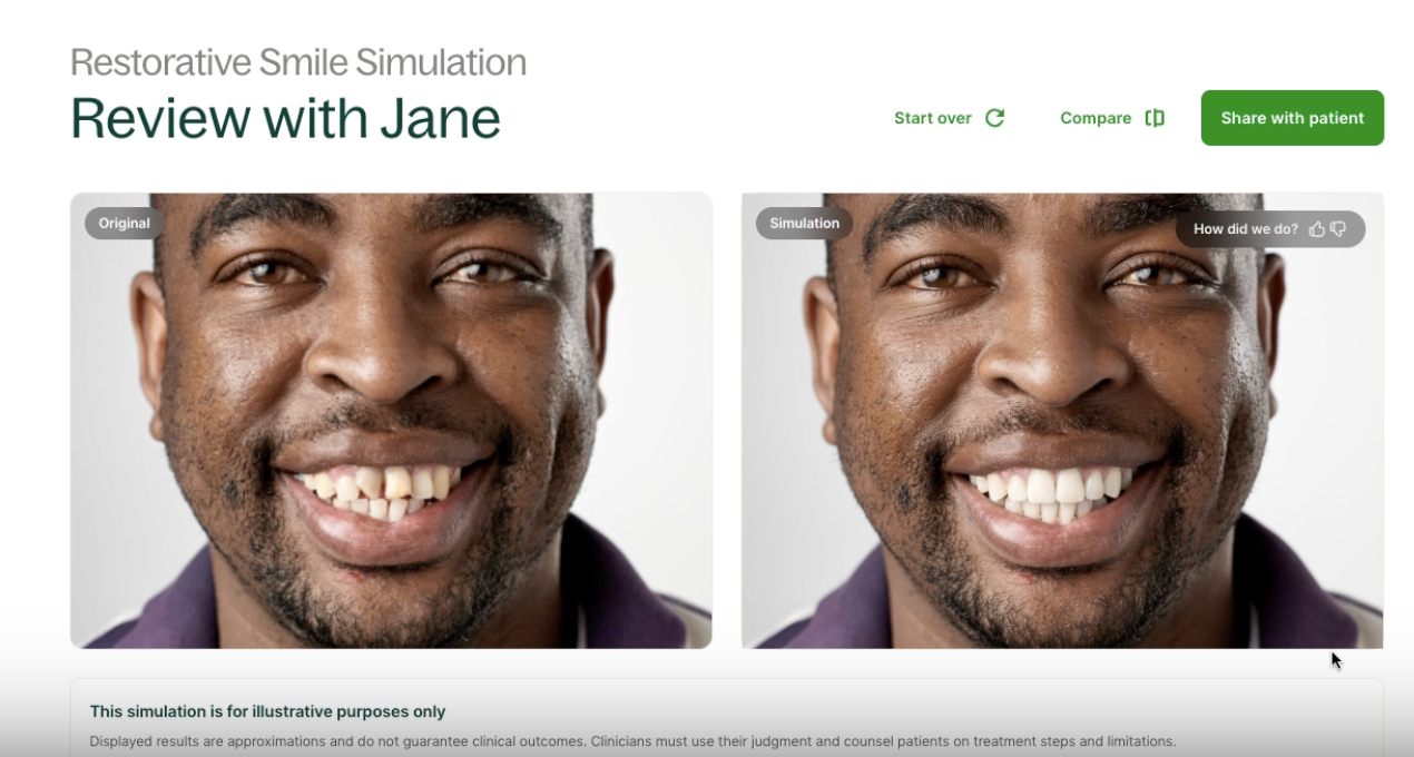 The Instant Smile Simulator is for illustrative purposes only. This tool will help patients understand the treatment being recommended but does not guarantee final outcomes. Clinicians must use their expert judgement and council patients on exact treatment steps and limitations.