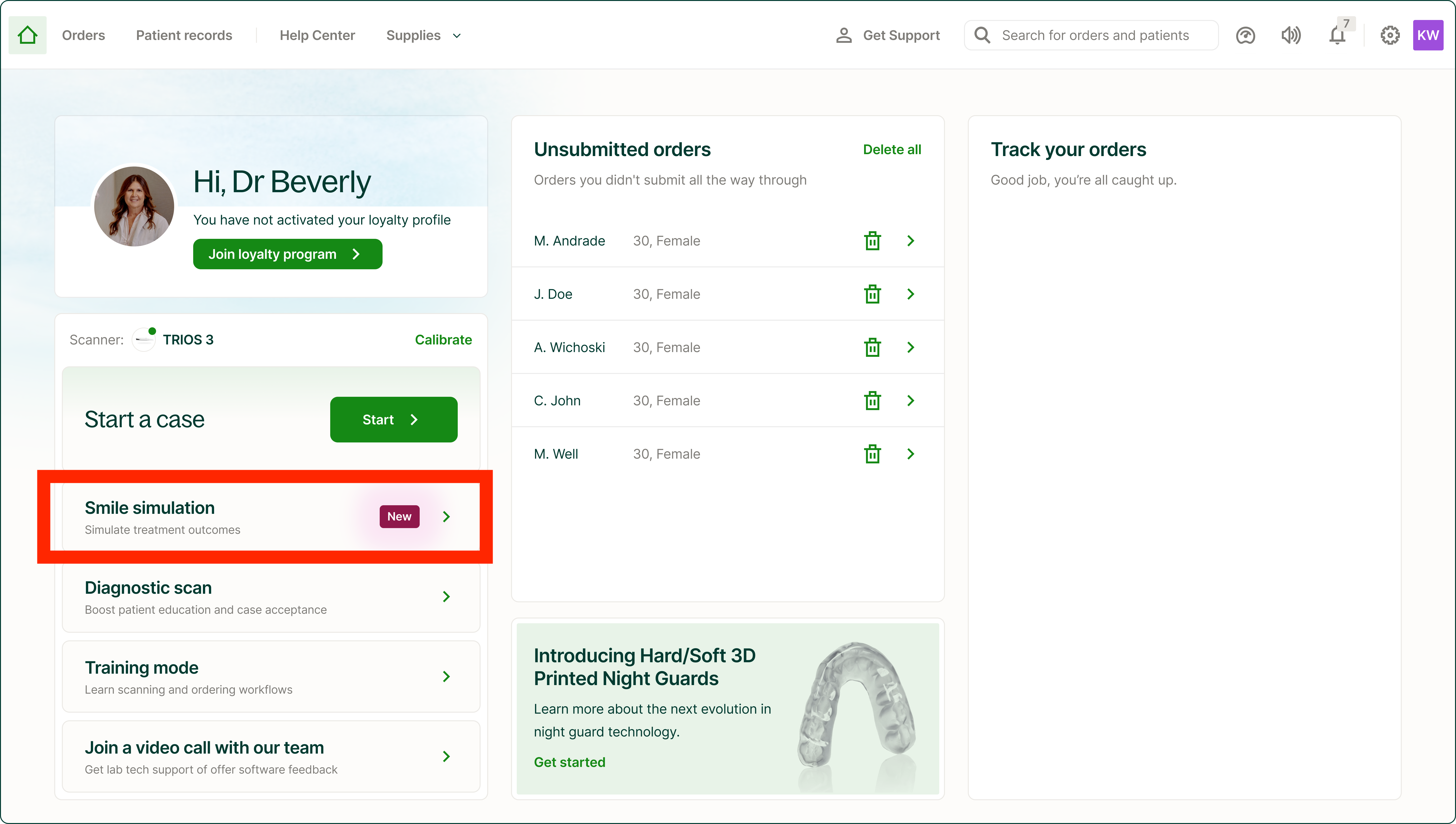 The second is by selecting “Start a Case” and choosing Instant Smile Simulator from the product menu screen.