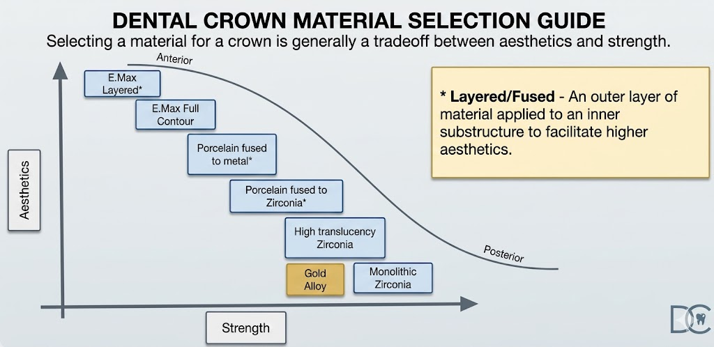 Before selecting a material, ensure the clinical preparation meets the minimum clearance requirements for the specific material chosen.
