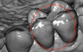 - Capture todo el contorno de los molares posteriores en los escaneos superior e inferior.