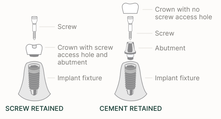 - La corona y el pilar vienen por separado, sin orificio de acceso en la corona