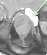 - Escaneo completo de contactos - Verifique que no haya datos faltantes y que tanto los contactos mesiales como distales de la futura corona estén completamente escaneados.