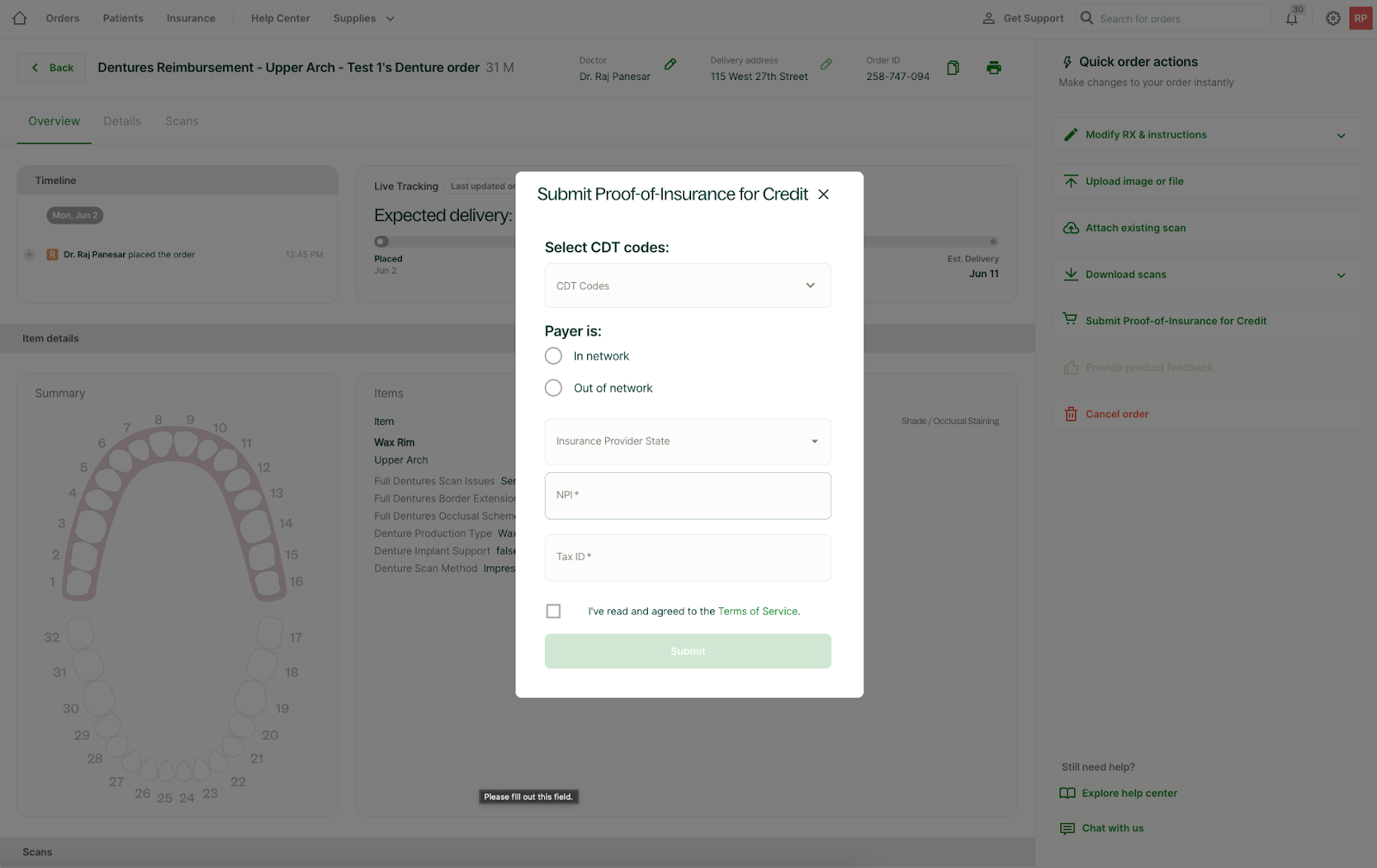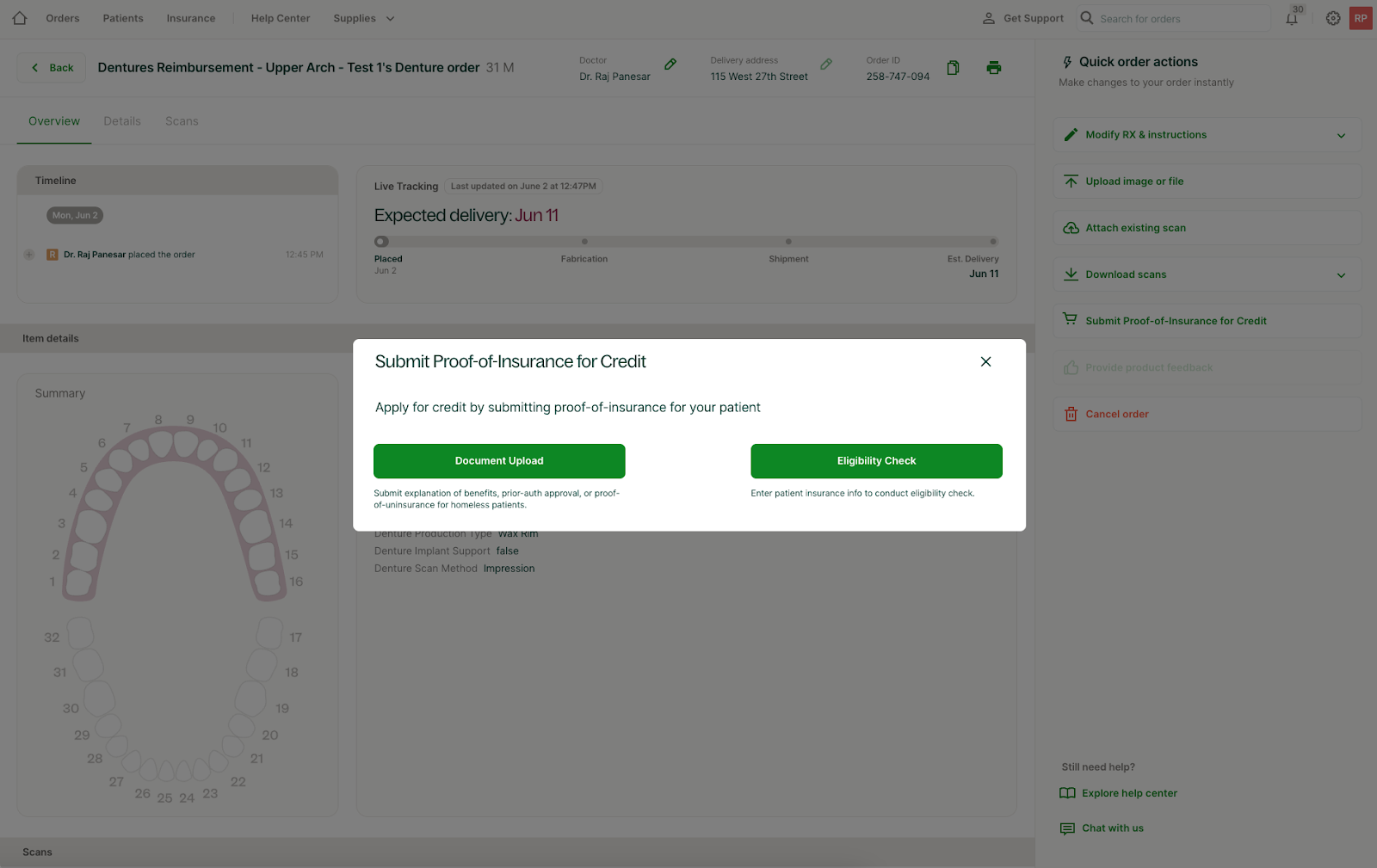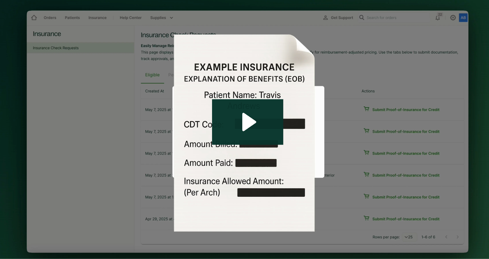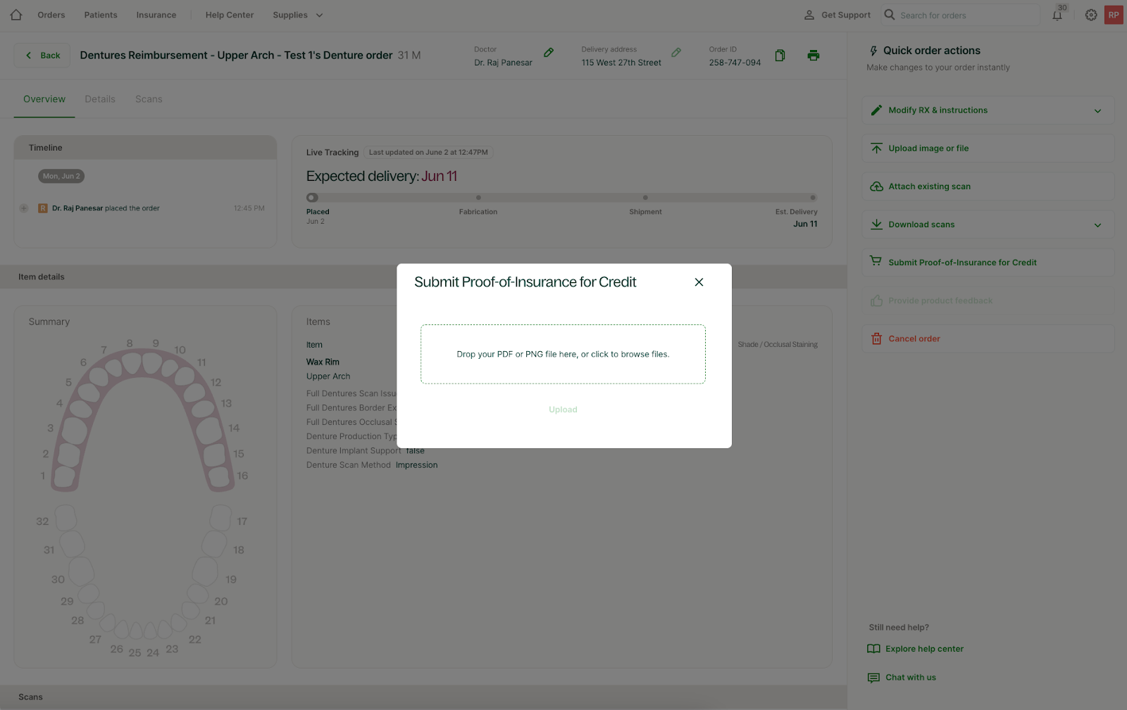 - Nueva pestaña Seguros (encontrada en el Portal - no en Chairside) para gestionar envíos y rastrear estados
