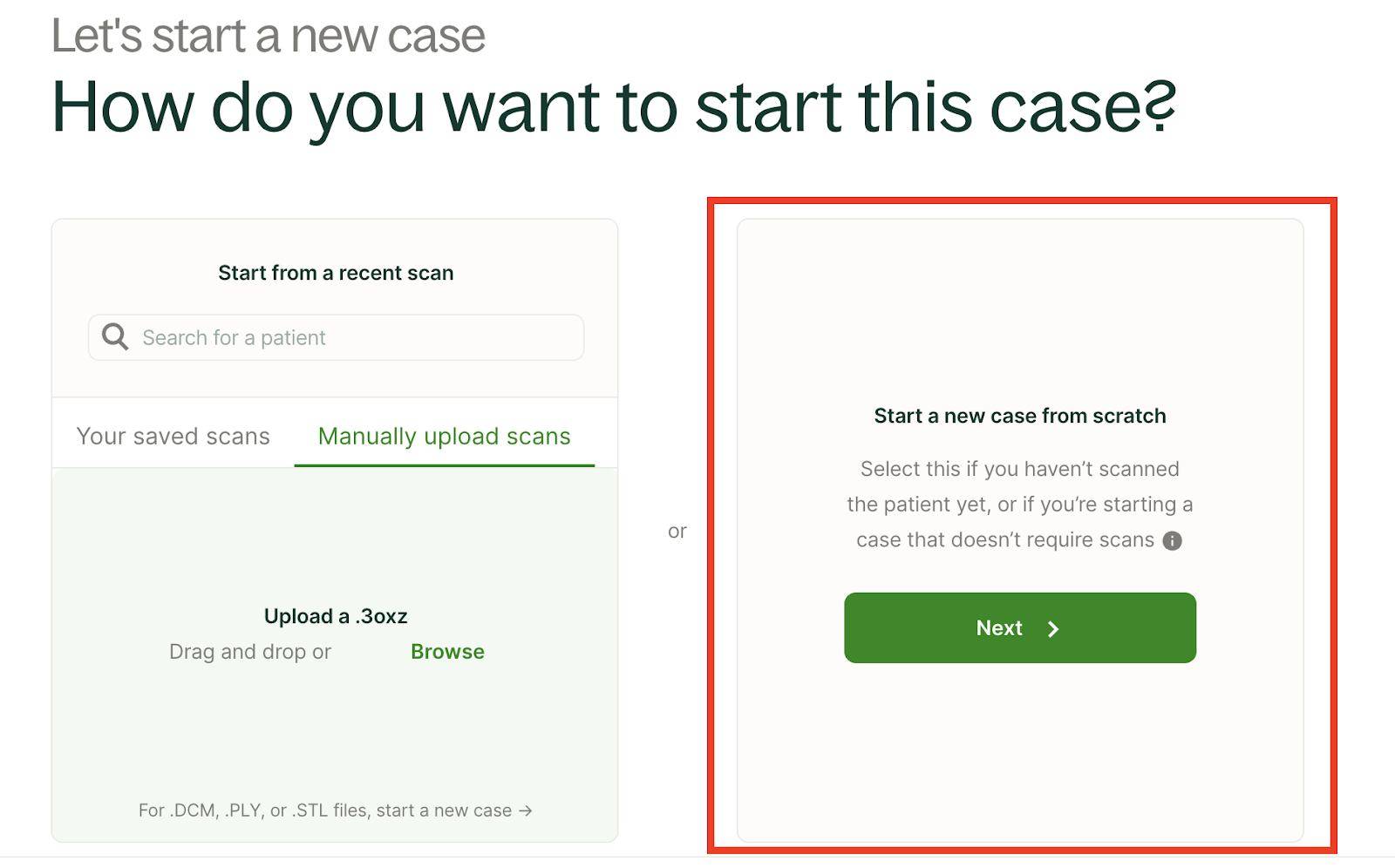 Esta guía le muestra los pasos iniciales para enviar e importar archivos de escaneo al Portal de Dandy para enviar un caso a Dandy.
